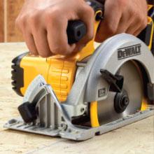 - DCS393 with 6-1/2-inch carbide blade can cut 2x4's at a 45-degree angle in a single pass